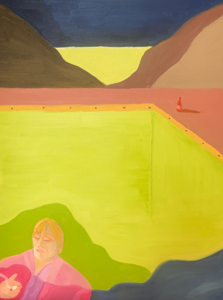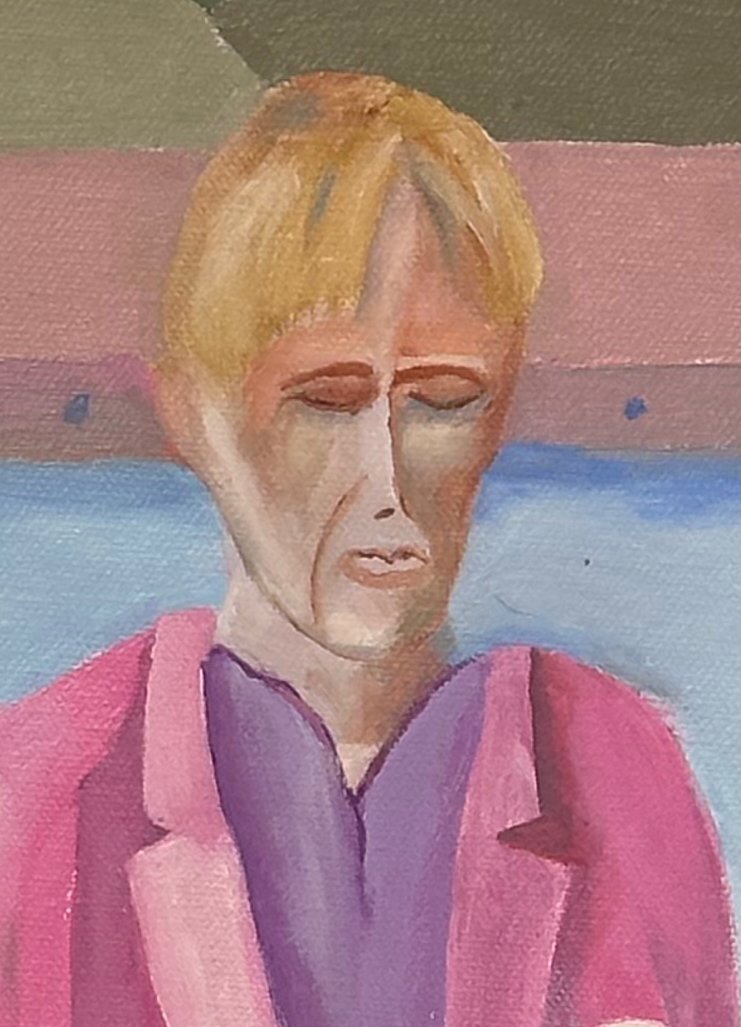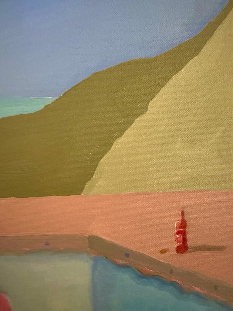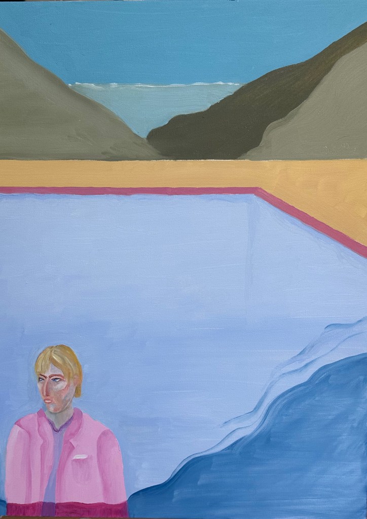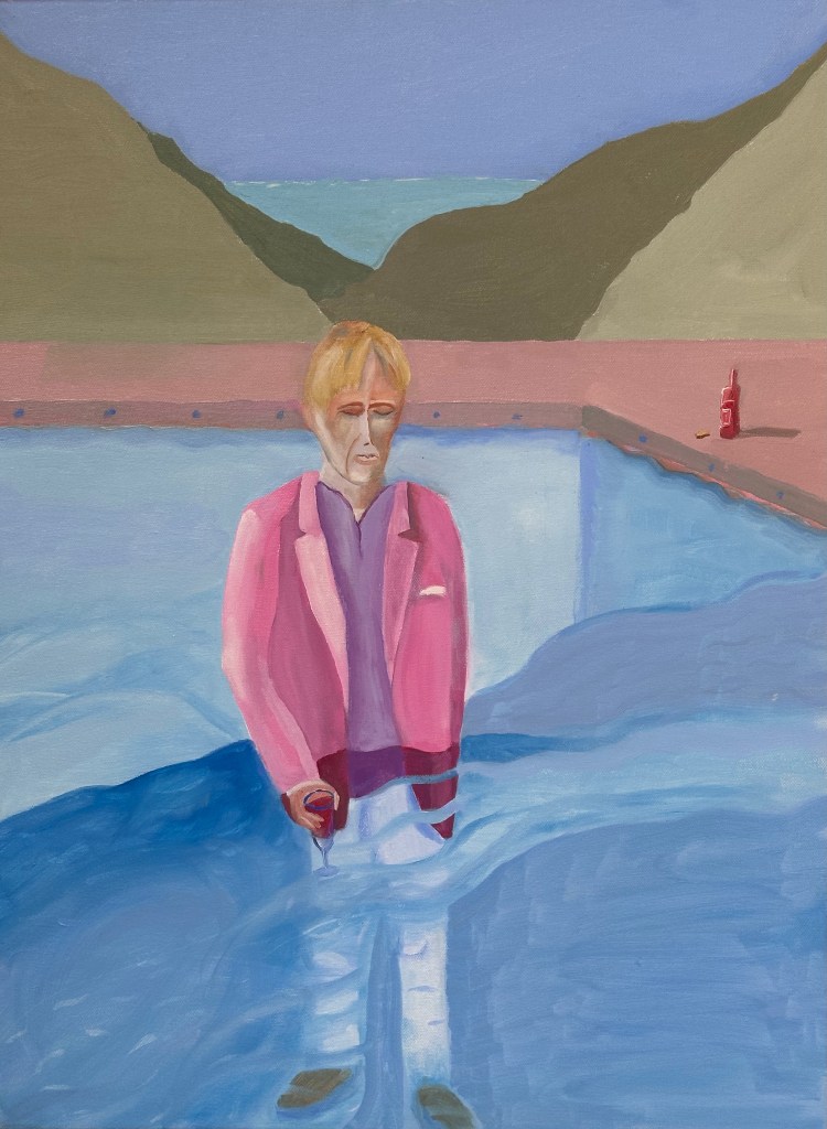 I was always curious about David Hockney’s Pool with Two Figures. It’s a classic painting capturing a moment in time, but I always wondered “What happens next?” What happens to the guy in the pink blazer? So I started playing around, and this series is the result.